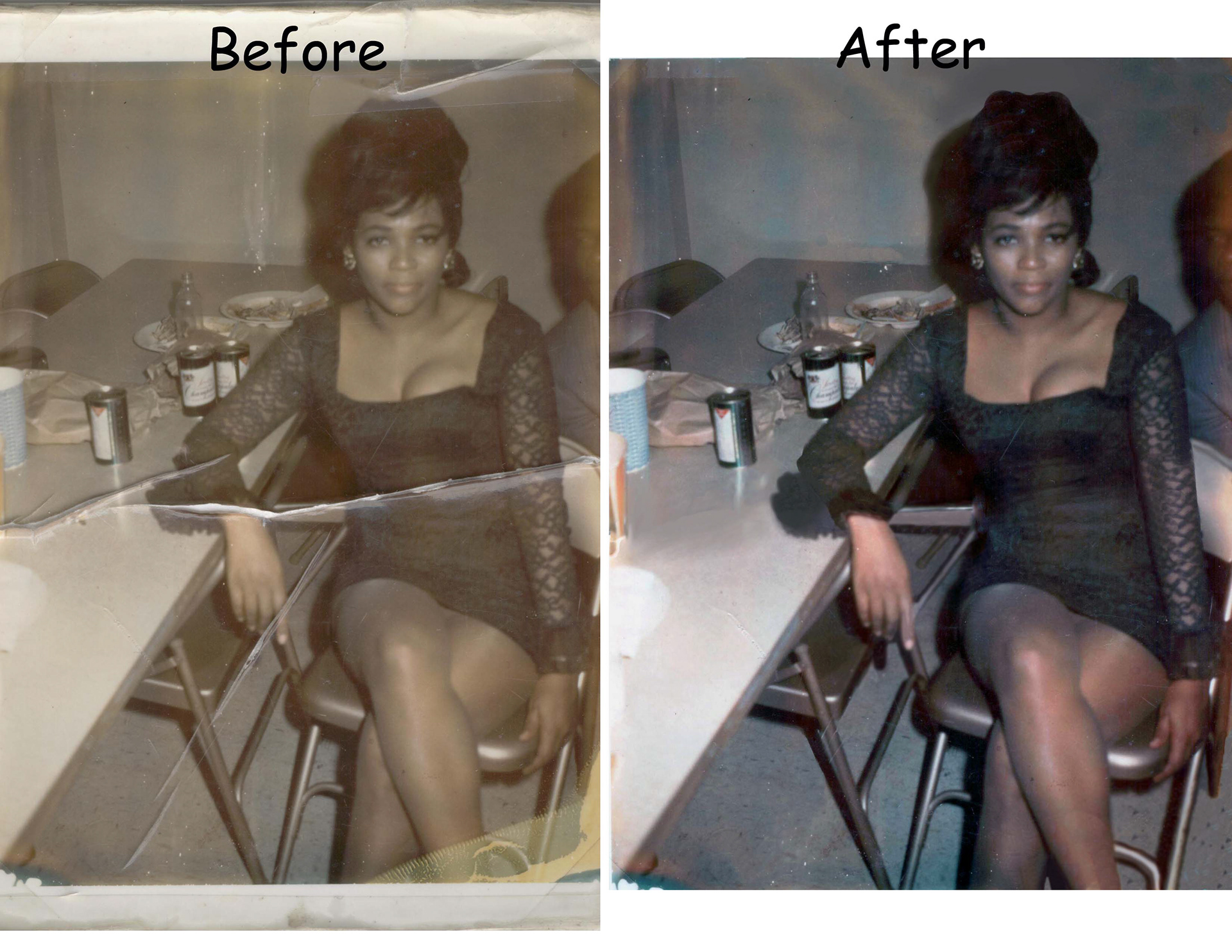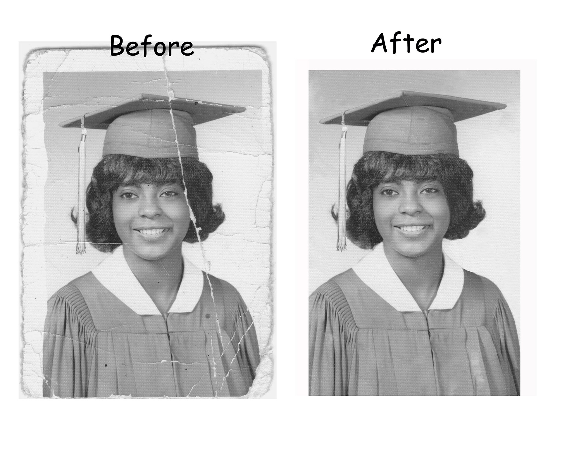 Those old, cracked, torn, discolored photos can be restored to their previous great glory!